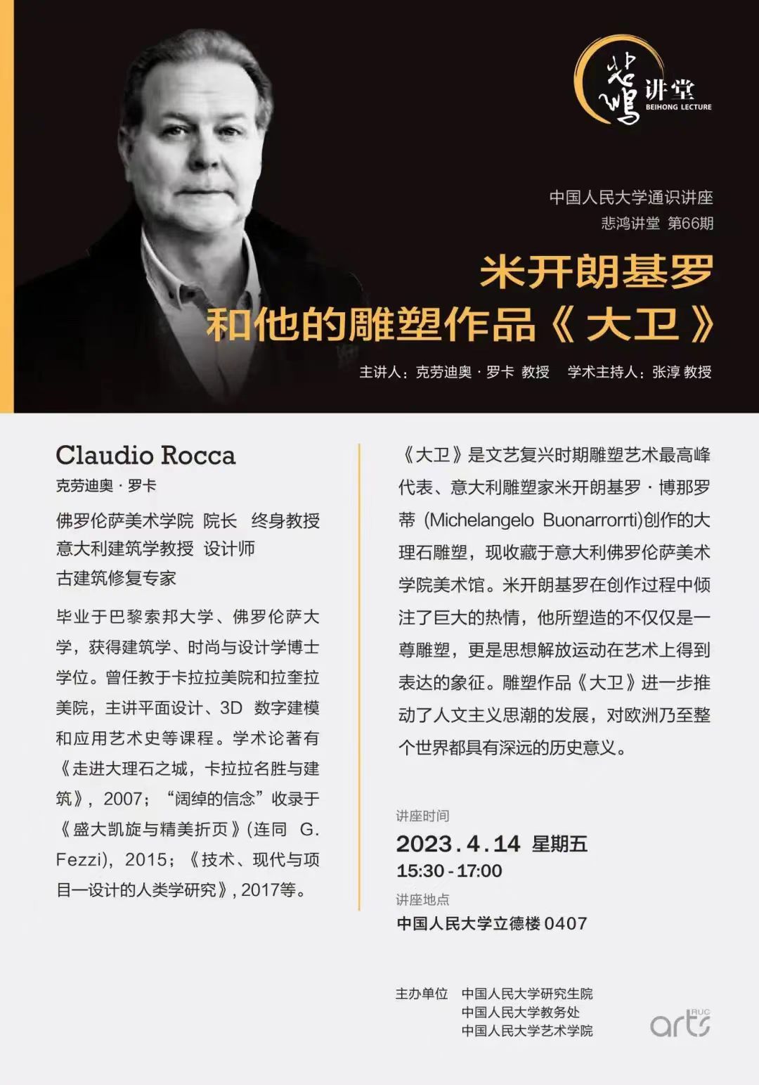 Review of 2023 Beihong Lecture Series“Michelangelo and his sculpture David”by Prof. Claudio Rocca