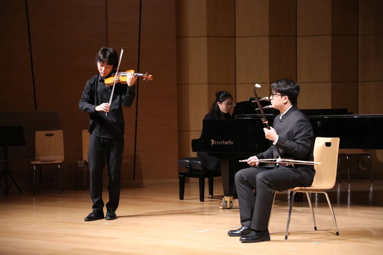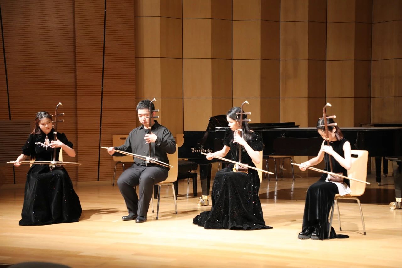 中华古典音乐社联合中央音乐学院民乐系教师、青年二胡演奏家王颖师生团队联合呈现。音乐会在曲目选择上精挑细选,将传统与创新融合,汇聚了一系列横跨不同时代的二胡重奏佳作,让观众们耳目一新。整场音乐会的曲目恰似一幅五彩斑斓、炫丽多姿的音乐画卷,徐徐在听众眼前展开。