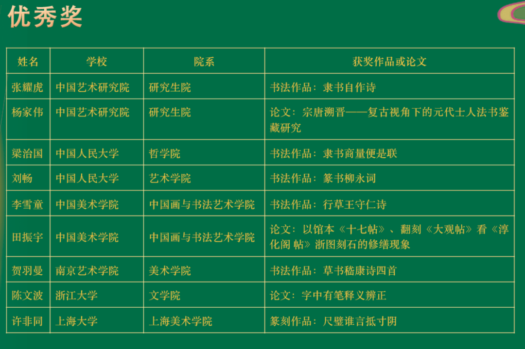 副院长李彤,中国美术学院教授张爱国,上海⼤学上海美术学院教授唐楷之、北京民⽣中国书法公益基⾦会学术部主任⾐雪峰。