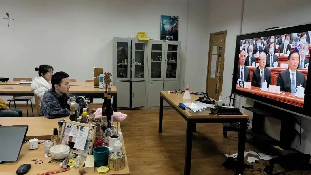 工作室观看了十四届全国人民代表大会第一次会议开幕式,并和同学一起进行了学习与交流,深得学习感悟。