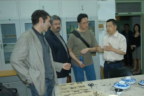 讲座结束后,约翰·巴达切诺副教授一行参观了我院绘画系青年教师展及学生画室,并与教师举行座谈。