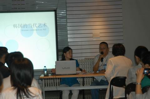 小展厅参观了展览,并参加了韩国著名美术评论家闵恩周女士以《韩国现代美术》为题的学术报告活动。此次展览将从9月17日持续到9月30日。